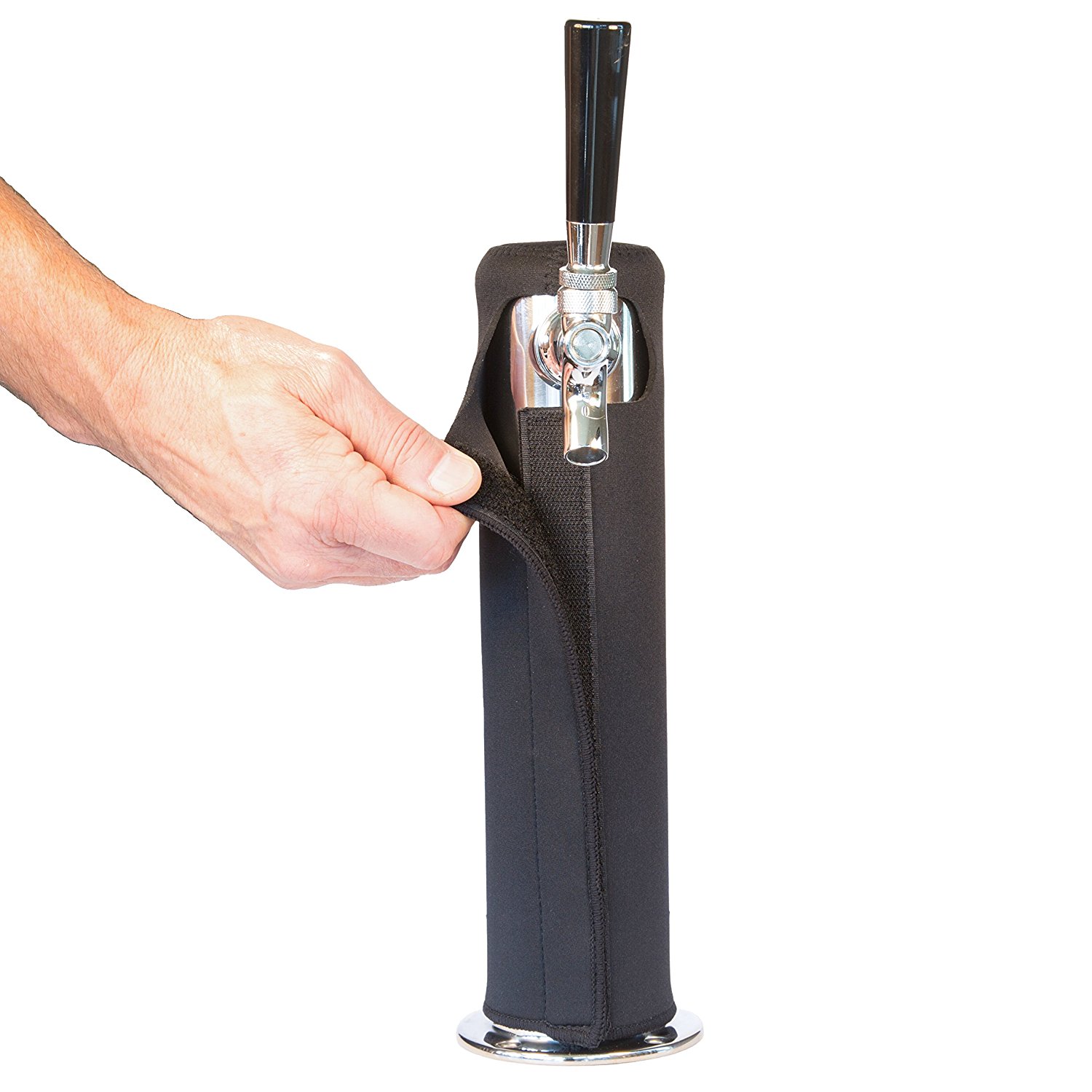 The Kegerator Tower Cooler Wrap is made from neoprene and designed to fit single or double tap beer towers (2.5" Diameter x 11.5" Height). Compatible with most popular beer dispenser tap towers brands.
